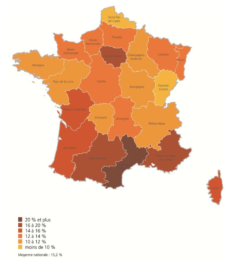 Dégradation sur l’arc méditerranéen – Il ressort de l’enquête que 15% du parc des copropriétés est en potentielles difficultés, ce qui représente environ un million de logements situés plutôt dans des copropriétés datant d’environ 1949. Le chiffre atteint 17% en Ile-de-France – 40% pour la Seine-Saint-Denis – et 20% dans la région Languedoc-Roussillon.