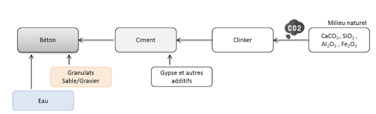La production de ciment étant le principal responsable de l’impact du béton sur le climat, il constitue la base des calculs suivants. Dans les hypothèses retenues, le ciment représente 15 % en moyenne de la masse du béton.