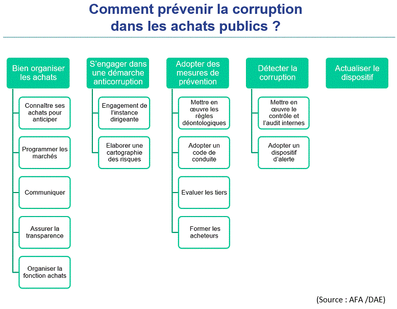 Pour les auteurs du guide, « le risque pénal n’est pas une fatalité dans le cycle de l’achat ; il peut être anticipé, prévenu et maîtrisé grâce à une démarche anticorruption efficace ». Ils conseillent bien sûr aux acheteurs de s’appuyer sur le cadre juridique de la commande publique (droit de la commande publique, droits et obligations des agents publics, obligation de publication des données…). Ils leur conseillent également d’adopter un « programme anticorruption traitant le processus achat dans son intégralité ».