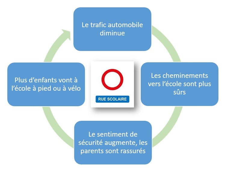 C’est pour cela que les premières expérimentations de rues scolaires ont vu le jour à partir de 2012, jusqu’à ce que ce concept entre dans le Code de la route en 2018, légalisant ainsi la mesure.