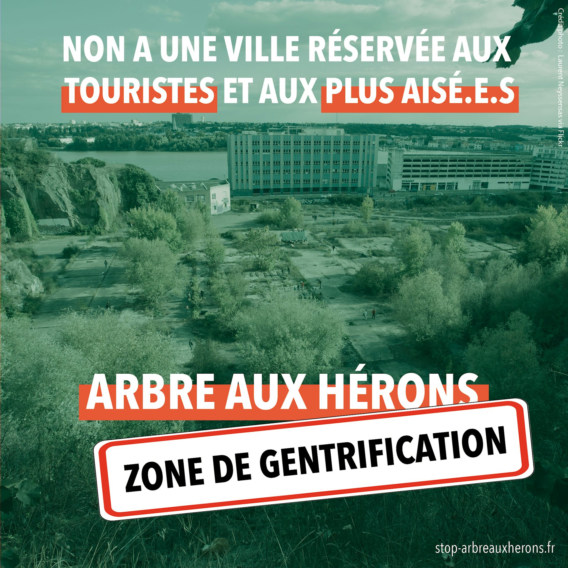 C’est le cas de l’arbre aux hérons qui s’inscrit dans la continuité du travail initié par Jean-Marc Ayrault, ancien maire de Nantes, de revalorisation de l’imaginaire et du patrimoine local à des fins culturelles et touristiques. Celui-ci est dénoncé par les habitants du collectif de la commune de Chantenay comme un projet de « touristification », un processus par lequel « le lieu touristique remplace les lieux ordinaires de la vie » et contribue par extension, à la gentrification du quartier et l’exclusion de ses habitants.