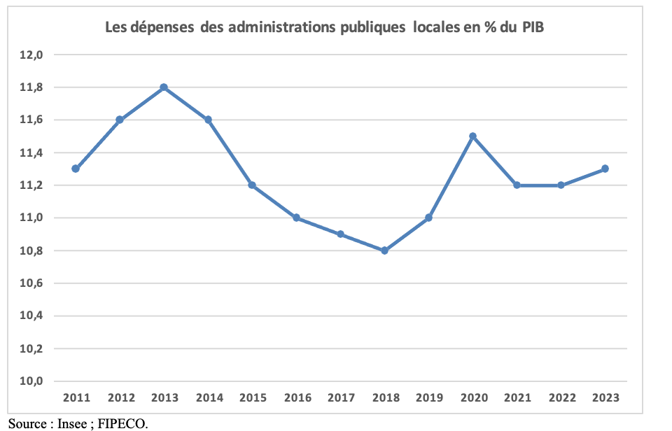 Les dépenses des APUL ont atteint 315 milliards d’euros en 2023, en hausse de 7,0 % par rapport à 2022. En pourcentage du PIB, elles ont légèrement augmenté, de 11,2 % en 2022 à 11,3 % en 2023.